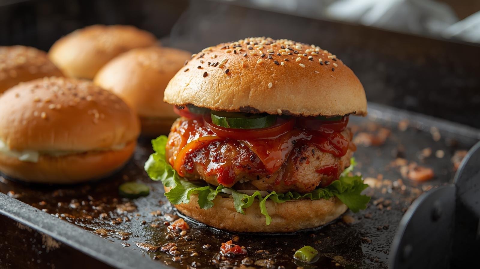 Hambúrguer de frango fit preparado na chapinha em apenas 8 minutos! Uma receita rápida, leve e perfeita para quem busca proteína sem complicação.