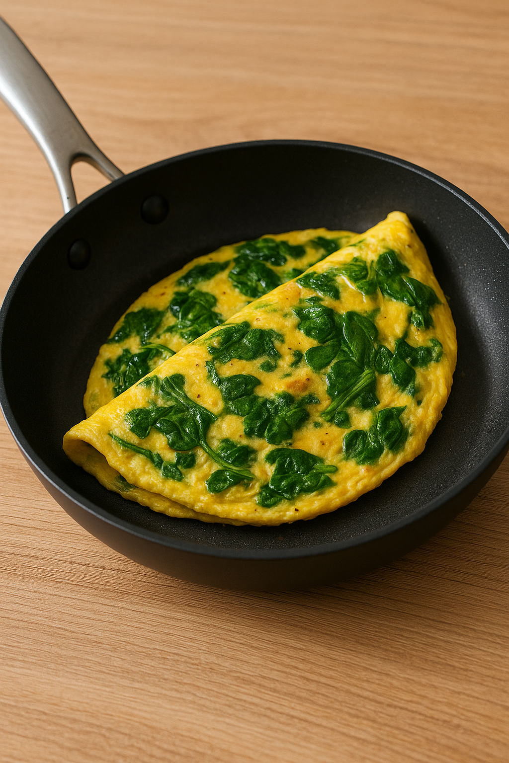 Quando bate aquela fome e o tempo é curto, essa omelete de espinafre fit em minutos é a melhor solução.